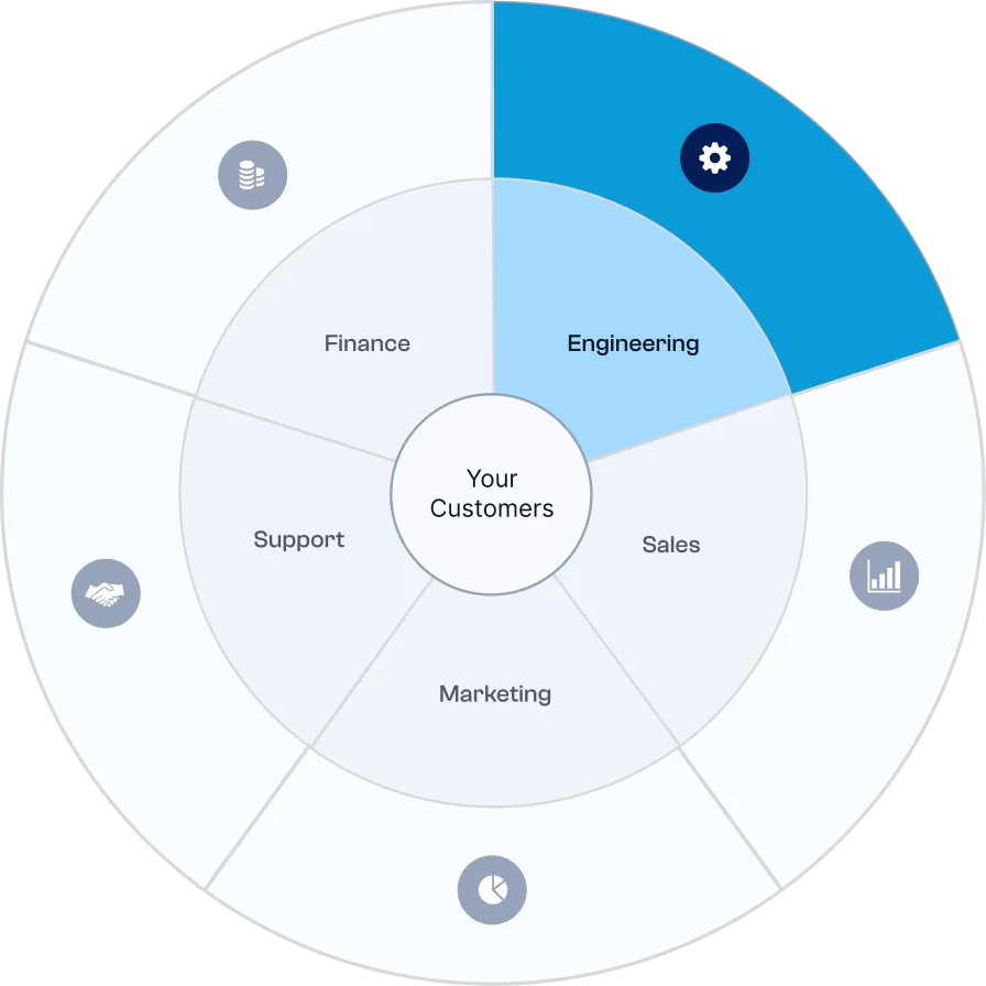 We audit, set targets, and run the cadence. Engineering, Sales, Marketing, Support, and Finance move in lockstep against weekly KPIs.